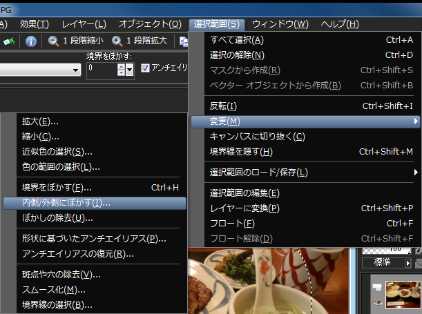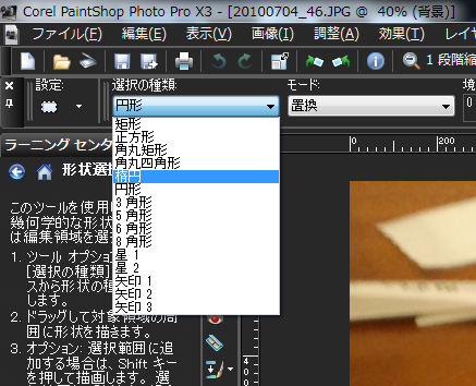 10:工程の3(選択範囲作成時)の次に選択範囲の変更をします。