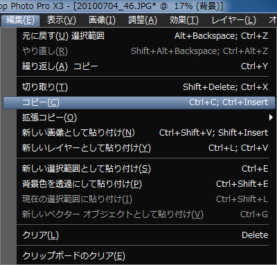 4:[編集]>[コピー](ショートカットはCtrl+C)