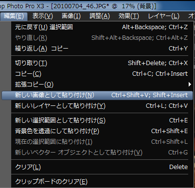 5:[編集]>[新しい画像として貼りつけ](ショートカットはCtrl+Shift+V)
