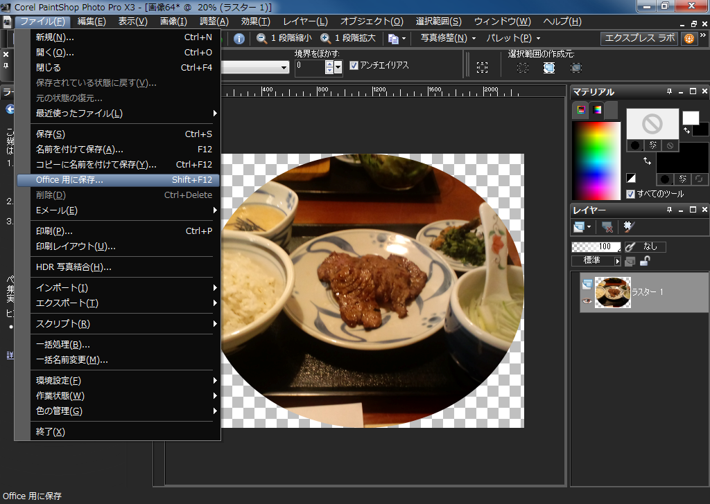 7:この状態でWordやWebに持って行きたい場合は[office用に保存]を選ぶといいでしょう。
