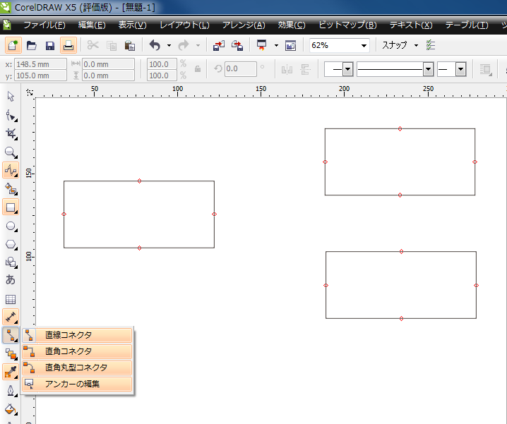 また、直線コネクタが新搭載されました。今までちょっとやりにくかったツリー状の表記がとてもしやすくなっています。