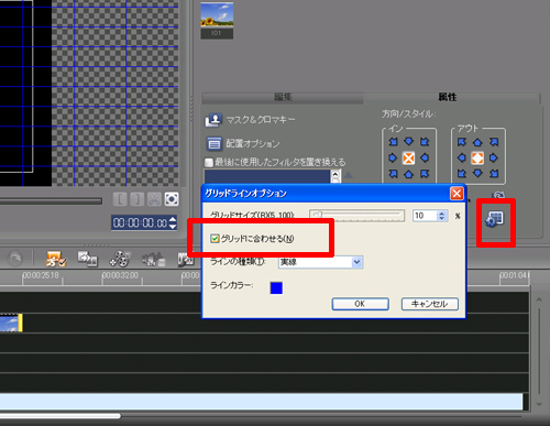 グリッドを表示させていると、矢印キーで1ドットずつ移動させて